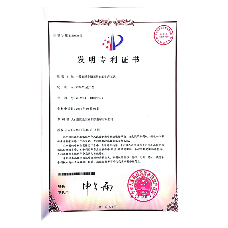 ติดอันดับ 1 ในอุตสาหกรรมผ้าไม่ทอของจีนติดอันดับ 10 เป็นเวลา 12 ปีติดต่อกัน