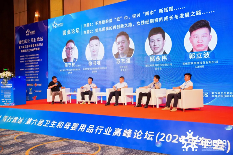 Zhou Shouquan ผู้จัดการทั่วไปของ Zhejiang Youquan Nursing Products Technology Co., Ltd., Su Yiqiang ประธานของ Yusheng Company, Chu Yongwei, ประธานของ Zhejiang Kakama Technology Co., Ltd., Xu Shuwei ผู้จัดการทั่วไปของ Haina Intelligent Equipment International Holdings Co., Ltd. และ Guo Libo ผู้จัดการทั่วไปของบริษัท Zhengzhou Zhilian Machinery Equipment Co., Ltd. แบ่งปันมุมมองและประสบการณ์เกี่ยวกับเทคโนโลยีล้ำสมัยและแนวโน้มในอนาคตของ "ผ้าเช็ดตัวสองผืนและ กางเกงสองตัว" ในผลิตภัณฑ์สุขอนามัยและผลิตภัณฑ์สำหรับแม่และเด็ก ซู อี้เฉียงกล่าวว่าบริษัท Yusheng มีประสบการณ์ในการพัฒนาผ้าอ้อมเด็กของจีนตั้งแต่เริ่มต้นจนถึงความเป็นเลิศ ตั้งแต่การนำเข้าไปจนถึงการแปลเป็นภาษาท้องถิ่น จากนั้นจึงส่งออก และหวังว่าจำนวนแบรนด์ระดับไฮเอนด์ในประเทศจะยังคงเพิ่มขึ้นต่อไปในอนาคต Zhengzhou Zhilian Machinery ทำงานได้ดีในด้านอุปกรณ์ทิชชู่เปียกและโซลูชั่นอัจฉริยะโดยรวม และยังได้รับผลลัพธ์ที่ดีอีกด้วย และส่วนแบ่งการตลาดในต่างประเทศก็เพิ่มขึ้นในช่วงสองปีที่ผ่านมา Chu Yongwei แนะนำประวัติการพัฒนาและแนวโน้มตลาดในอนาคตของตลาดผ้านุ่ม Xu Shuwei กล่าวว่าอุปกรณ์กางเกงมีประจำเดือนยังคงคิดค้นและสร้างความก้าวหน้าอย่างต่อเนื่องในช่วงไม่กี่ปีที่ผ่านมา และผลิตภัณฑ์ก็มีความก้าวหน้าอย่างรวดเร็วตั้งแต่รูปทรงกางเกงไปจนถึงวัสดุที่สวมใส่สบาย